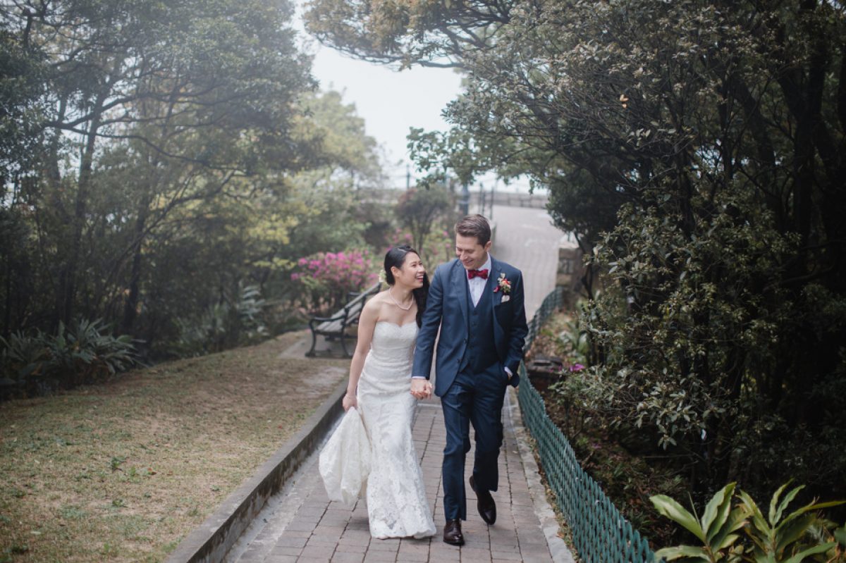 This beautiful photo session as taken at the end of Sharon & Lee’s wedding day at The Peak & Victoria Peak Gardens – the best location to get Pre Wedding photos on The Peak