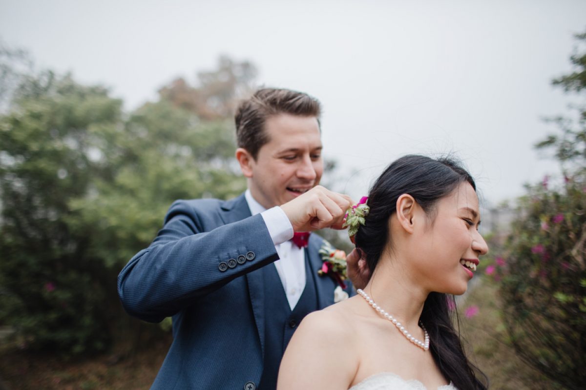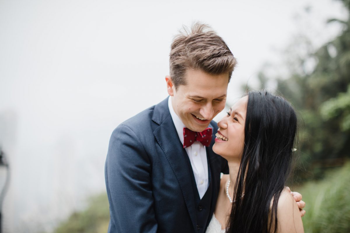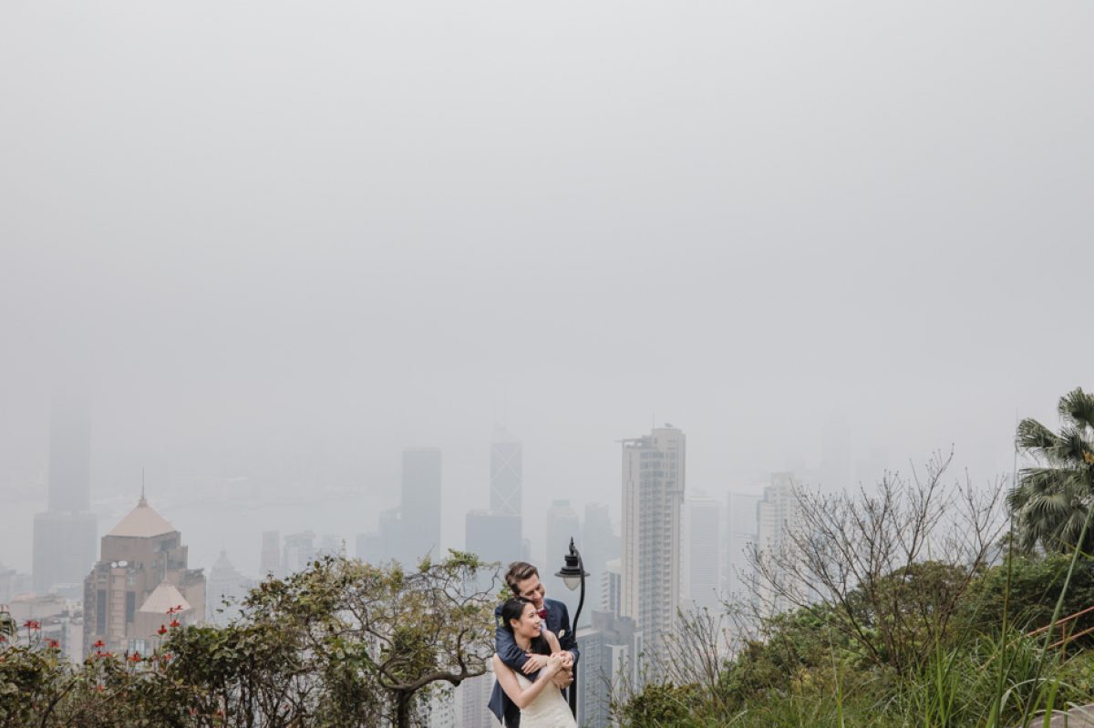 After their marriage registry we headed up to Victoria Peak Gardens for some pics. Although it was very misty we managed to get some lovely shots overlooking Mt Austin and down to Lamma Island. The mist made the shots very atmospheric and I loved getting them to get close and spin around in the woods.