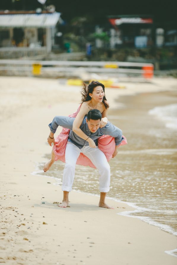 Got some great shots of the couple at the pier and then headed to Chung Hom Kok beach to get some final beach shots. A very special place for me as this is where I proposed to my wife! Found some lovely coral at the end for a great engagement ring shot – so you’ll have to scroll down all the way to see that one! Enjoy the pics below…